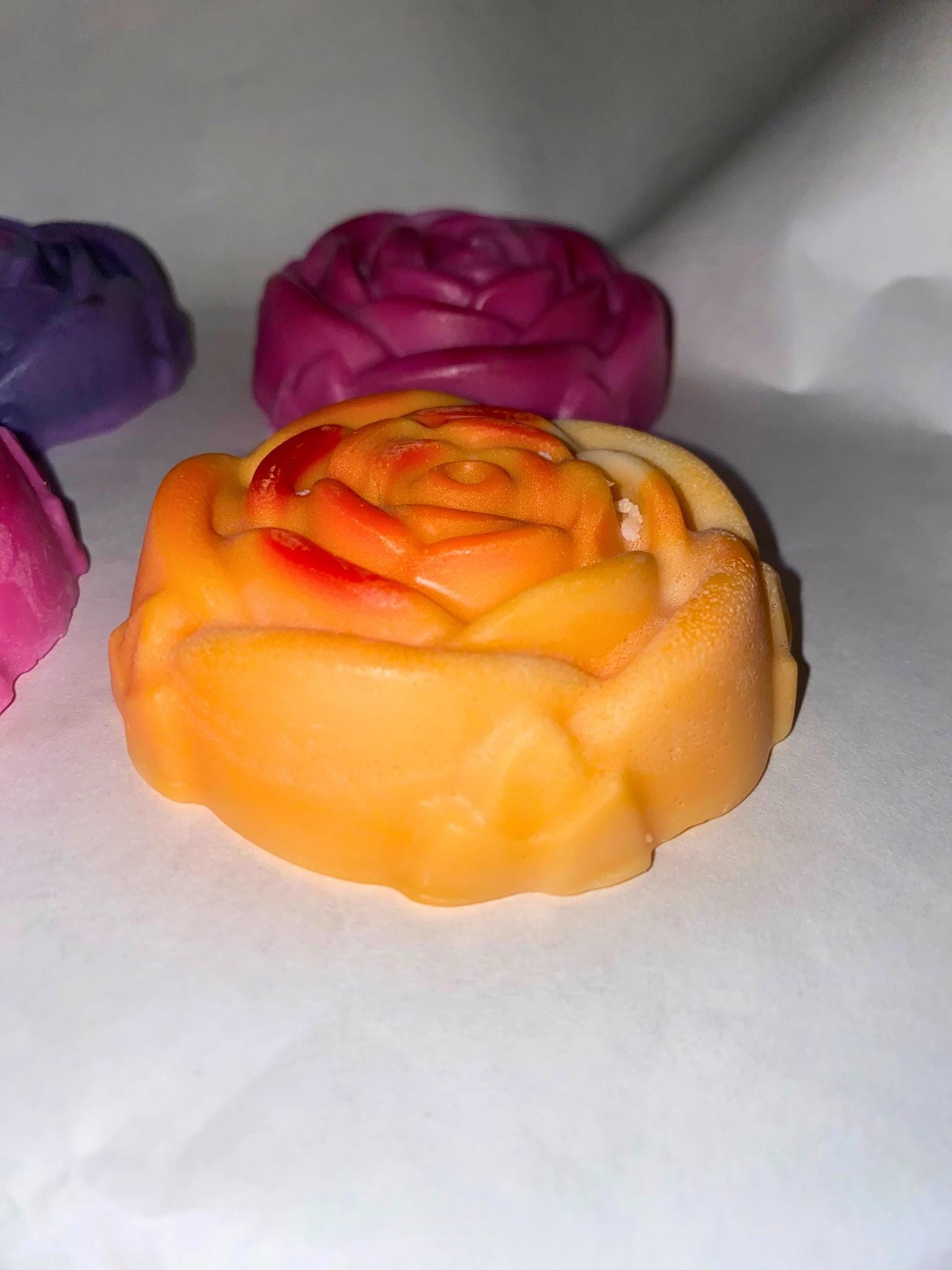 This sculpted rose soap combines the richness of goat milk with an uplifting fusion of eucalyptus and mint. The elegant floral form makes it as beautiful as it is cleansing — a perfect gift or self-care indulgence. With every wash, enjoy a cooling freshness and a soft, milky finish your skin will love.